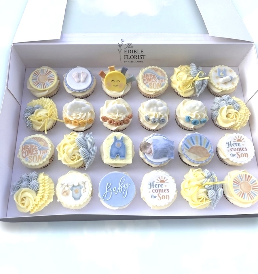 Alongside our bouquets, we also offer beautifully presented boxed cupcakes. These can be designed with delicate floral piping or customised to suit your chosen theme.