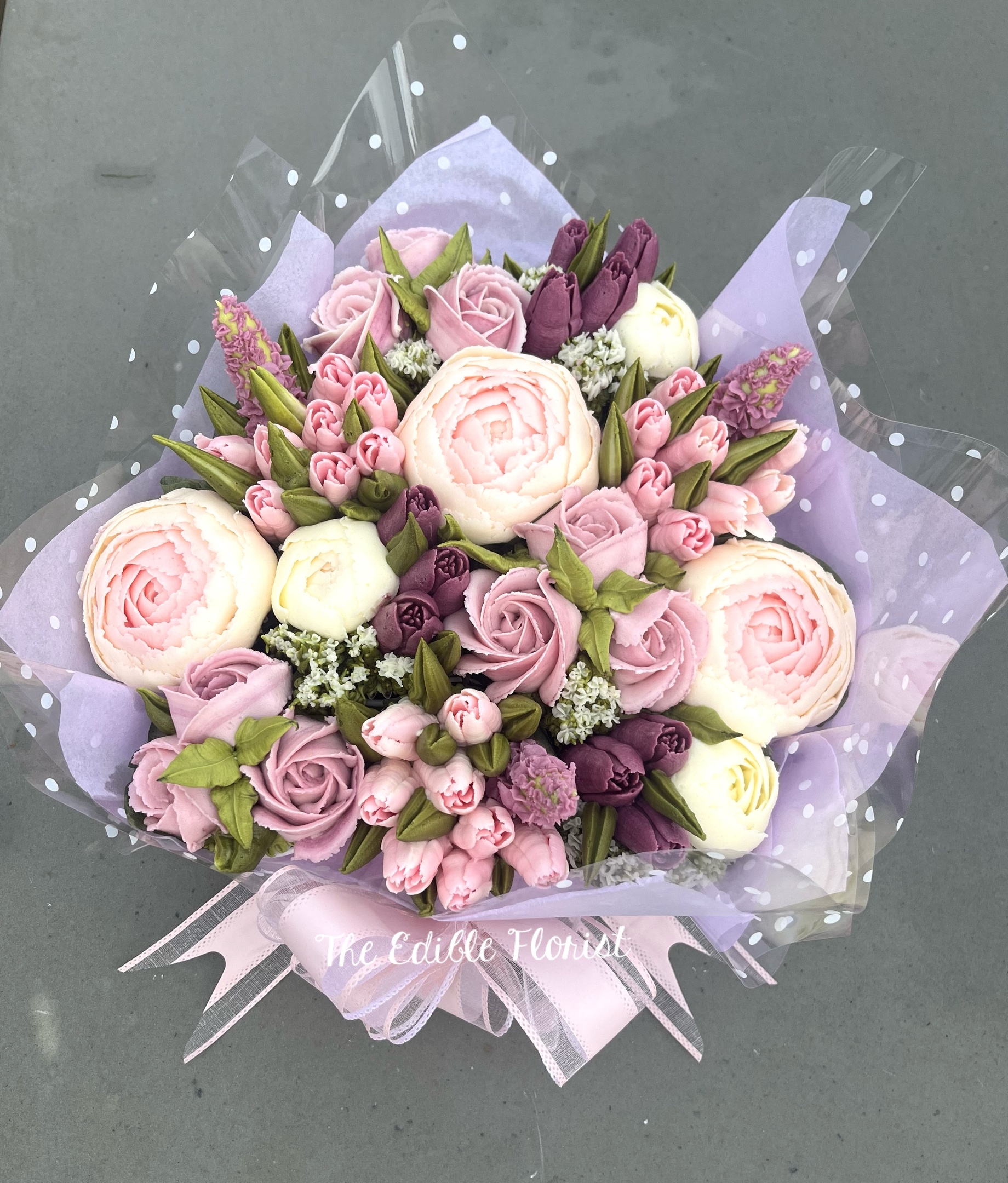 This stunning and tasty treat is sure to impress any recipient. Just wait for all the oohs and ahh’s when they receive their special gift! and when you tell them their cupcakes and all completely edible they will be blown away!! This thoughtful arrangement is a truly elegant hand-made gift that will create a memorable and delicious experience for any occasion.