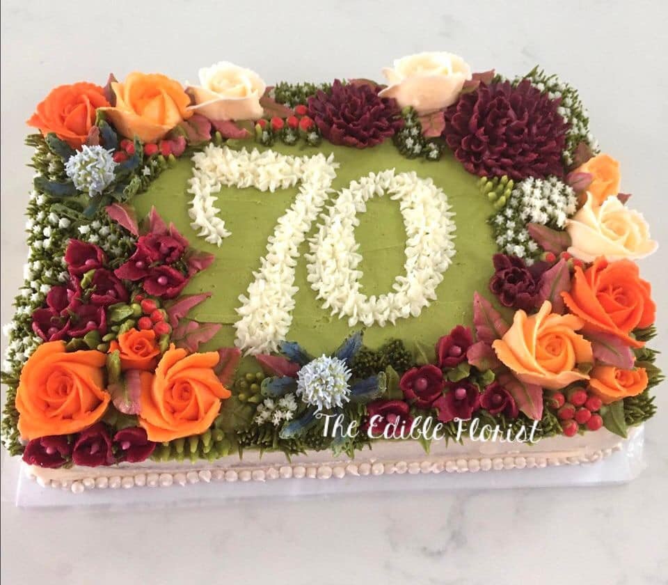 Our giant number cakes are bursting with masses of edible blooms which can be matched to your own colour choice.