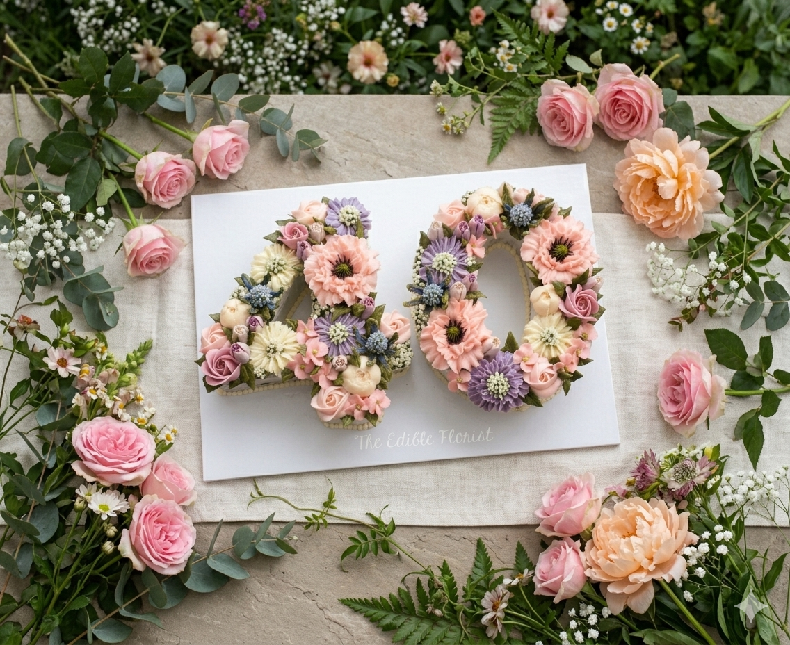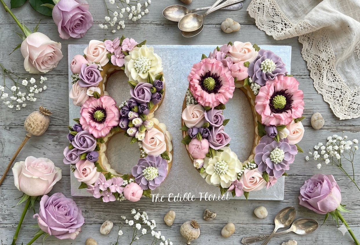 Our giant number cakes are bursting with masses of edible blooms which can be matched to your own colour choice.