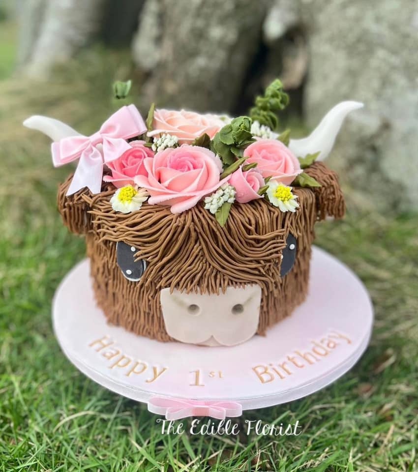 The ultimate treat for the Highland Coo lover. This design is inspired by life right here on the farm—if you’re lucky, you might even spot our very own Flora grazing nearby! Each strand of "coo hair" is meticulously hand-piped and finished with delicate buttercream florals. Whether you want muted pastel tones or vibrant blooms, we can adapt the colour scheme to match your vision perfectly.